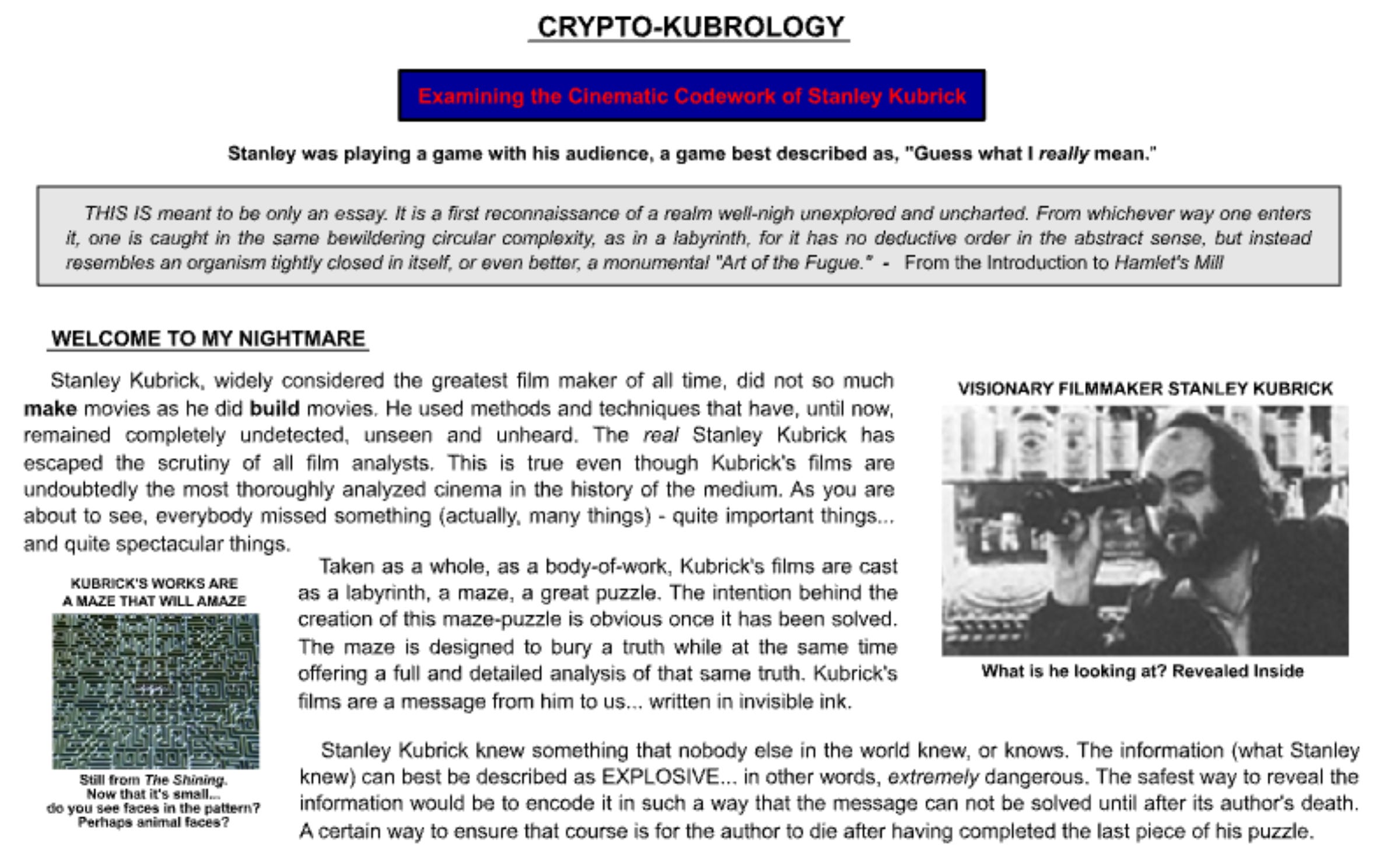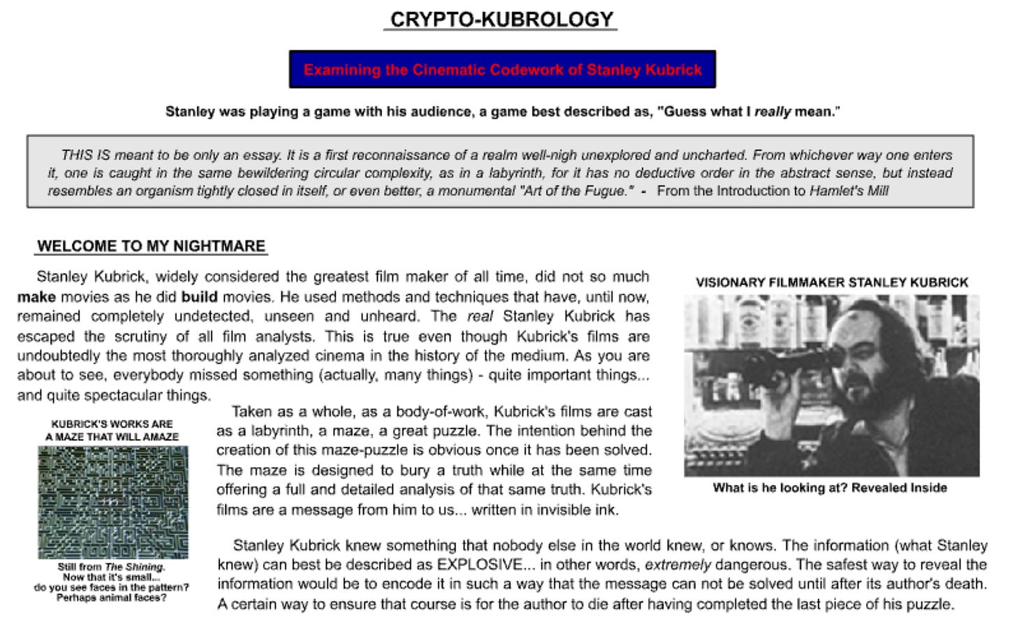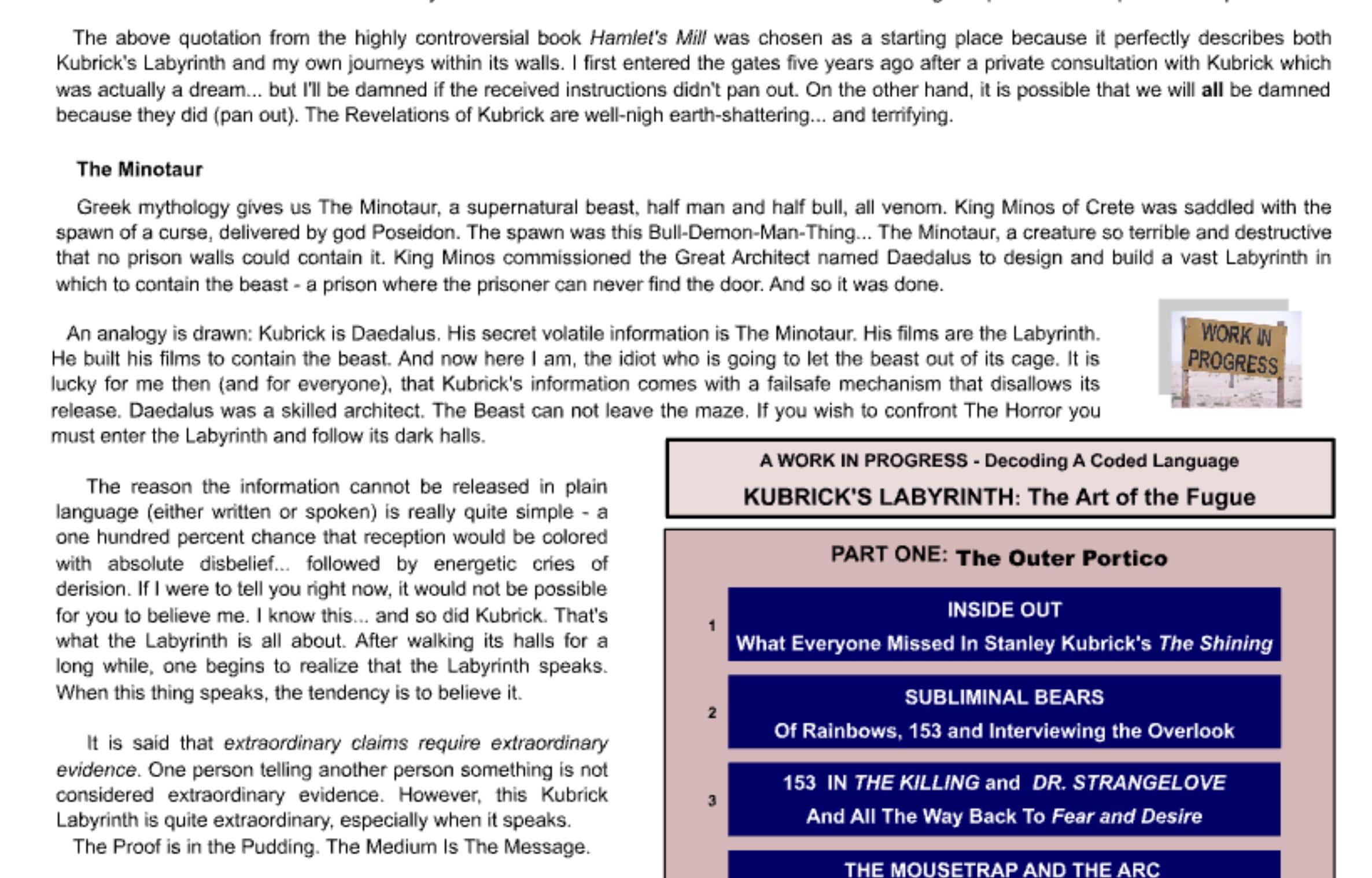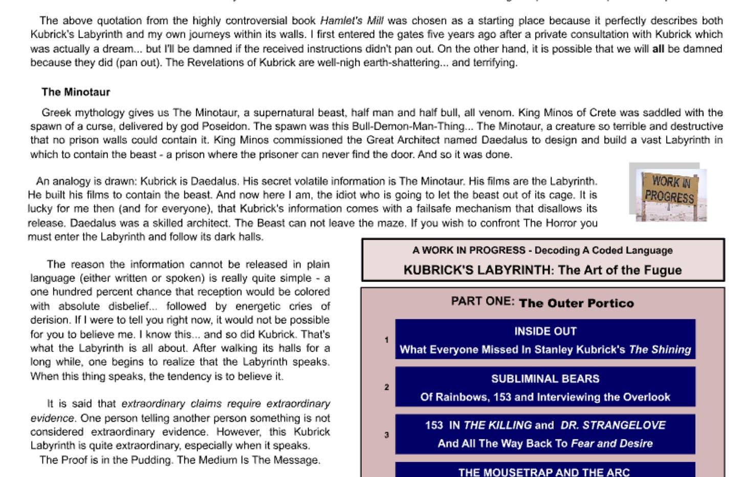 A-maze-ing apparitions. Broken bits of magic spells. Dark incantations thrust forth from somewhere, jumbled and rearranged, then sprinkled down onto the timeline of a Century, or a piece of Cinema, or the life of an Individual, or a moment in the life of an Individual, Century, or Celluloid. Sifting through these "broken bits of magic spells" is like living in a place where the language is foreign. After time and repeated exposure, one begins to slowly come to understand, and even speak, the foreign language. So it is with Crypto-Surfing. The cut-up girl, the fragmented female, the REDRUM, can be seen as expressions of a deeply occult language emanating from an even more deeply occult agency. Something made the person or people chop up and destroy the girl. That same something made the girl be there to be killed and chopped up.